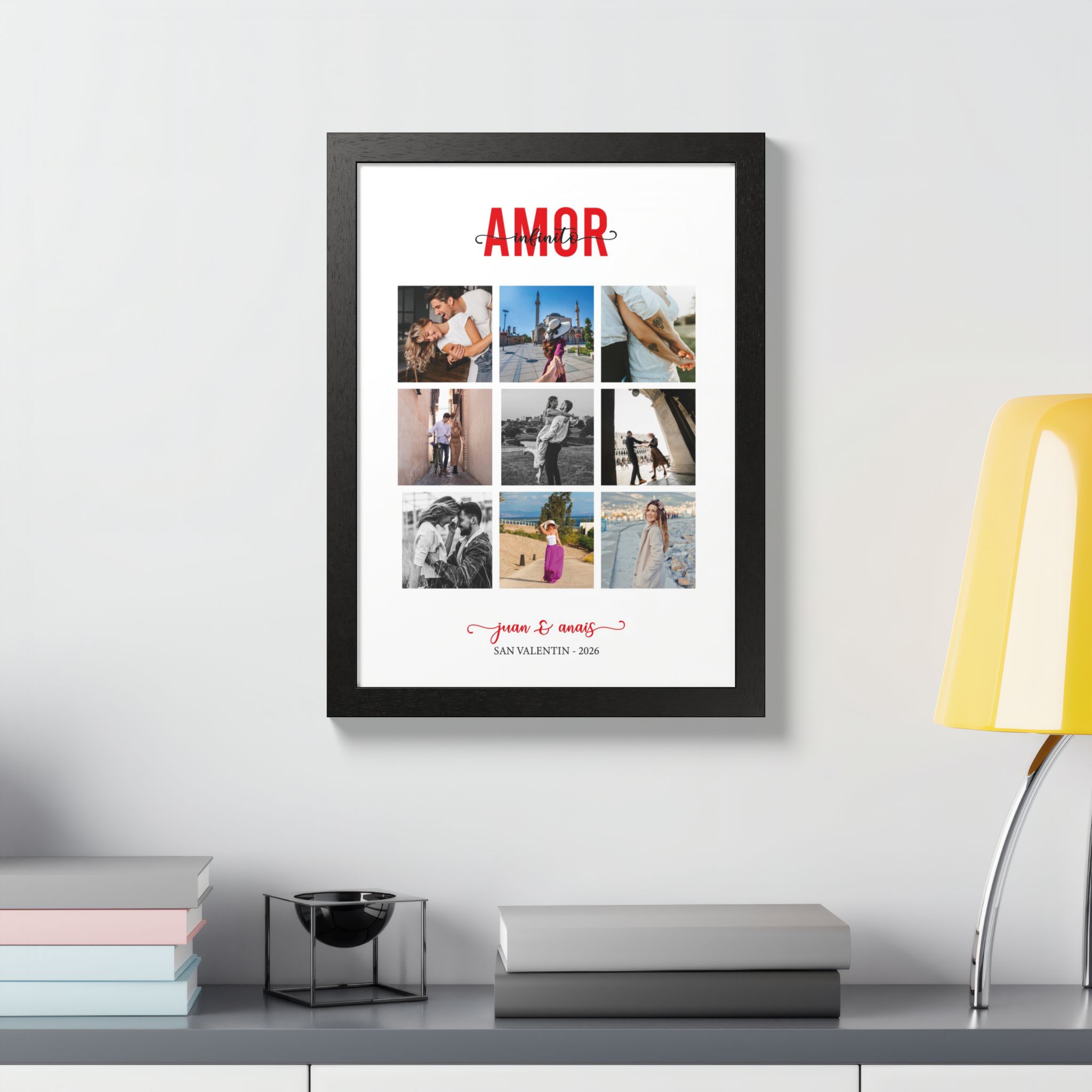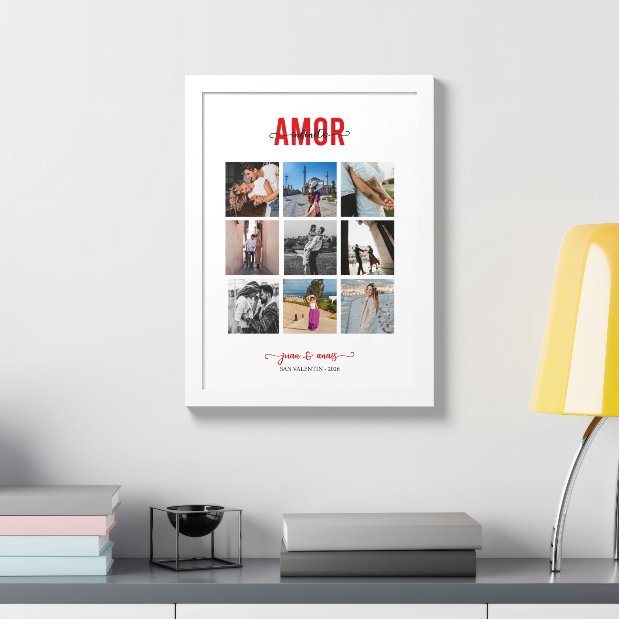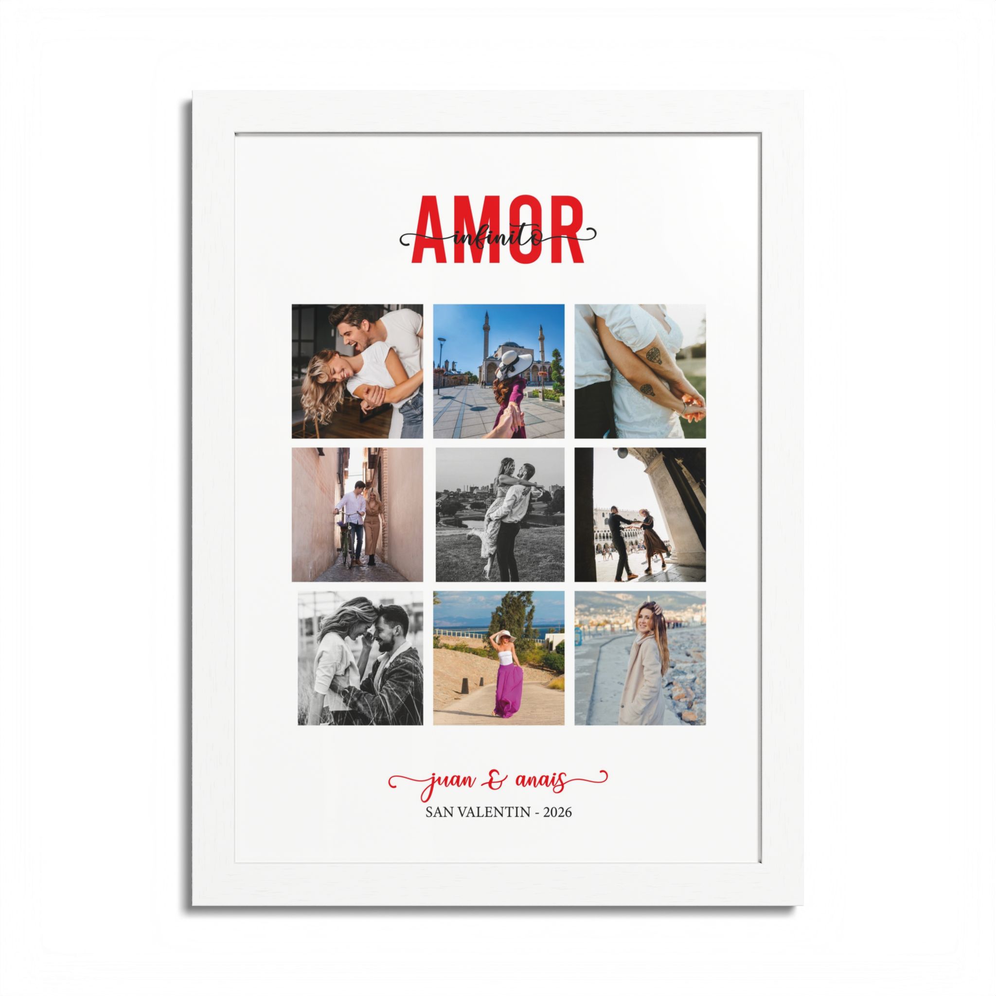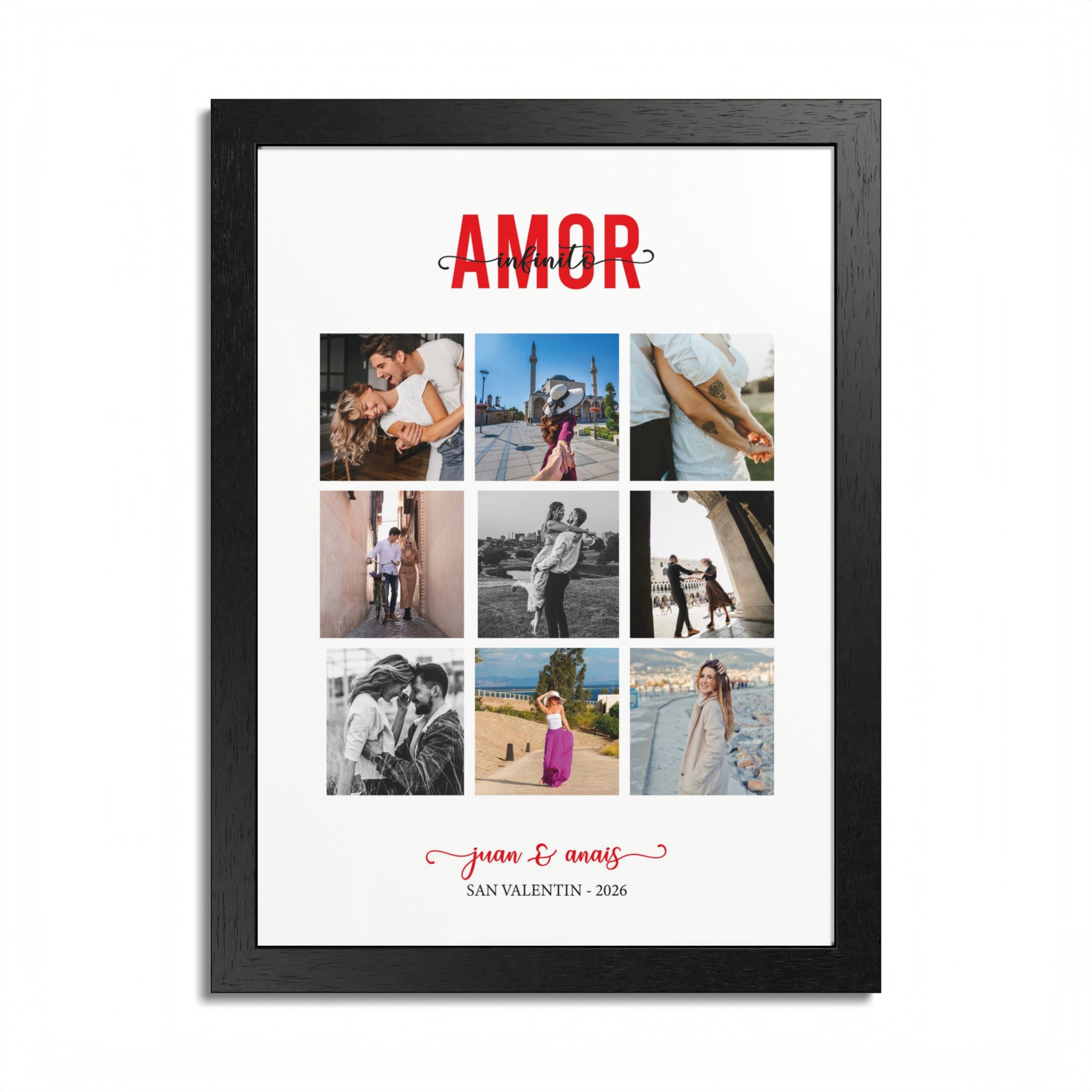 El regalo perfecto para este San Valentín. Este impresionante cuadro fusiona tus momentos más preciosos en un diseño artístico que emana romance y conexión. Cada imagen se entrelaza en un hermoso collage, creando una obra maestra que cuenta la historia única de tu relación. Con un toque personalizado, este regalo no solo es visualmente impactante, sino también cargado de significado emocional. Asegura que tu ser querido sienta el amor que has depositado en la selección de estas imágenes, convirtiendo este cuadro en un símbolo perdurable de vuestro amor. Haz que este San Valentín sea memorable con un gesto tan especial como vuestros recuerdos.