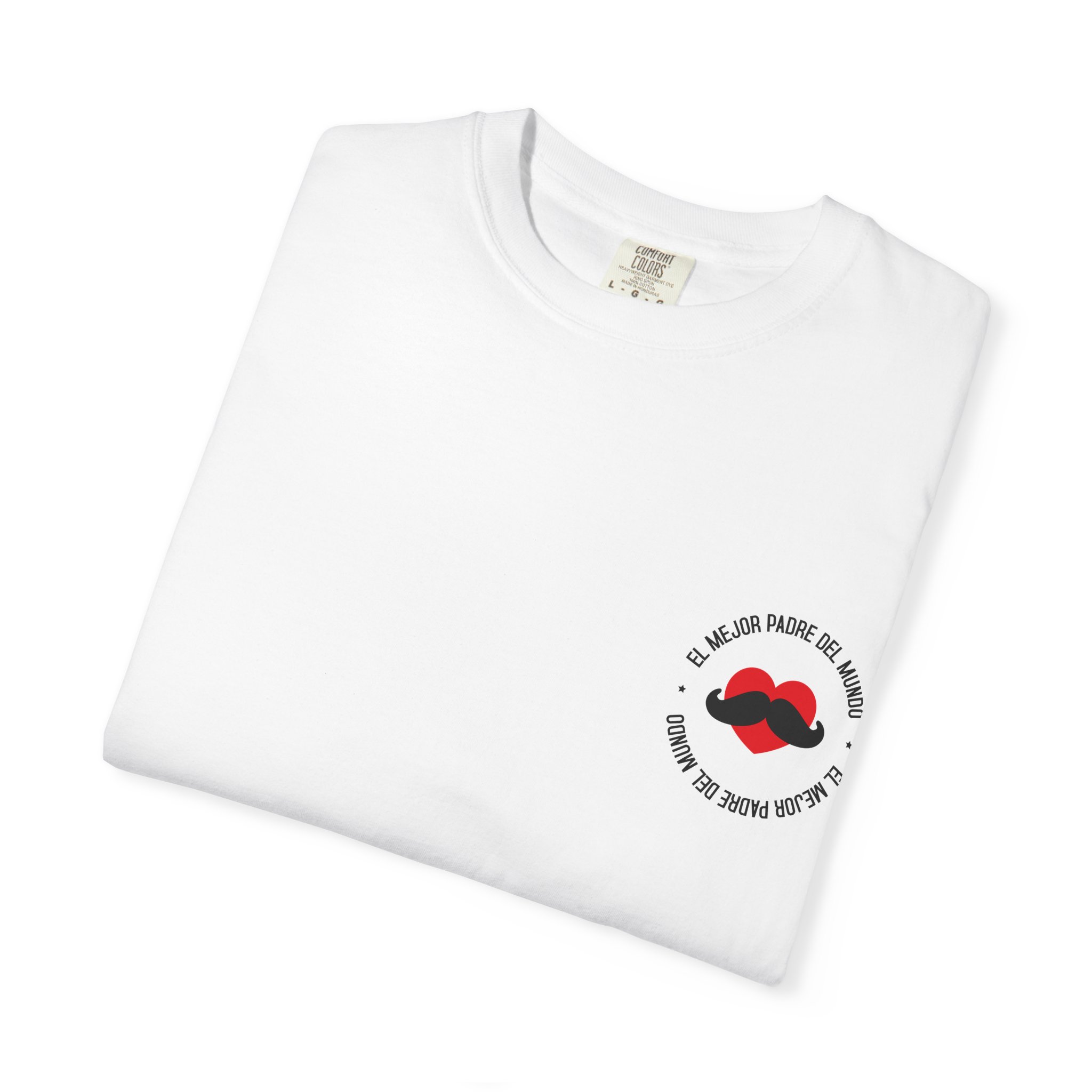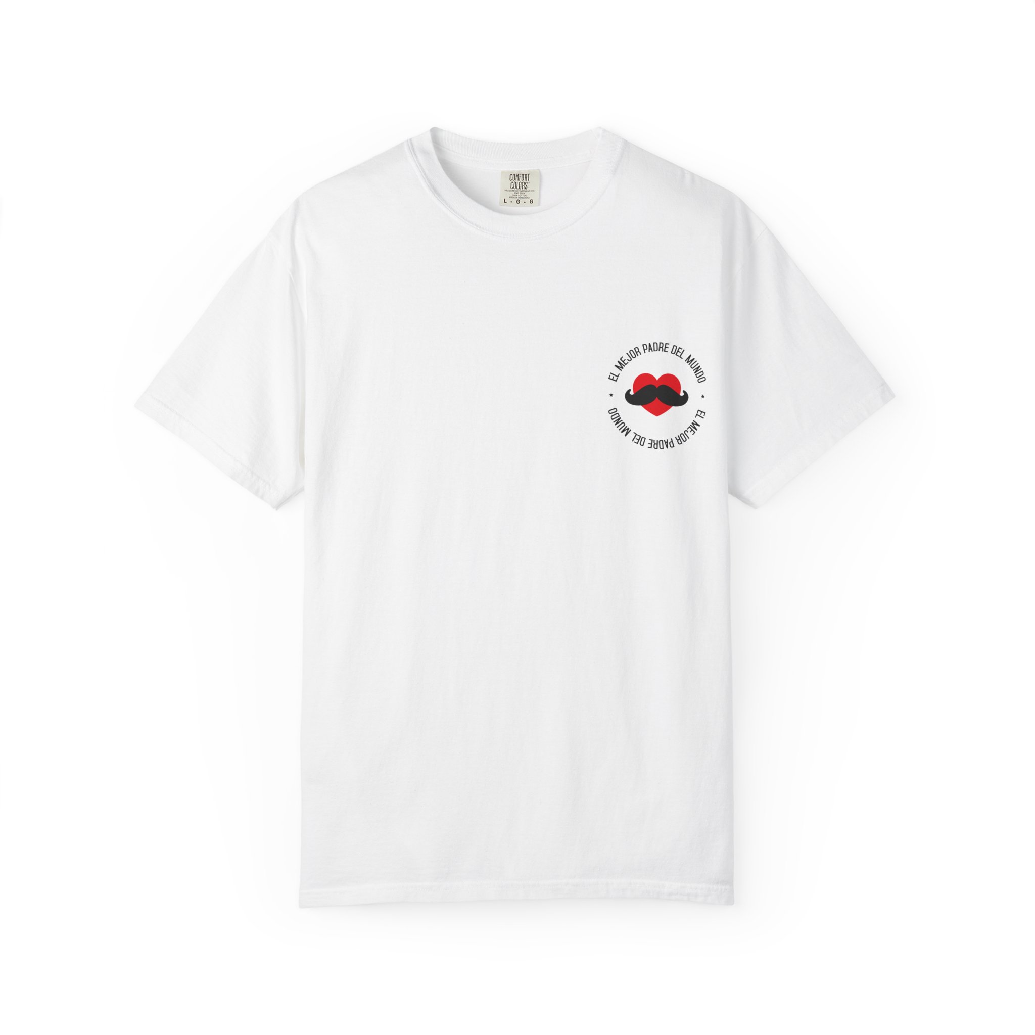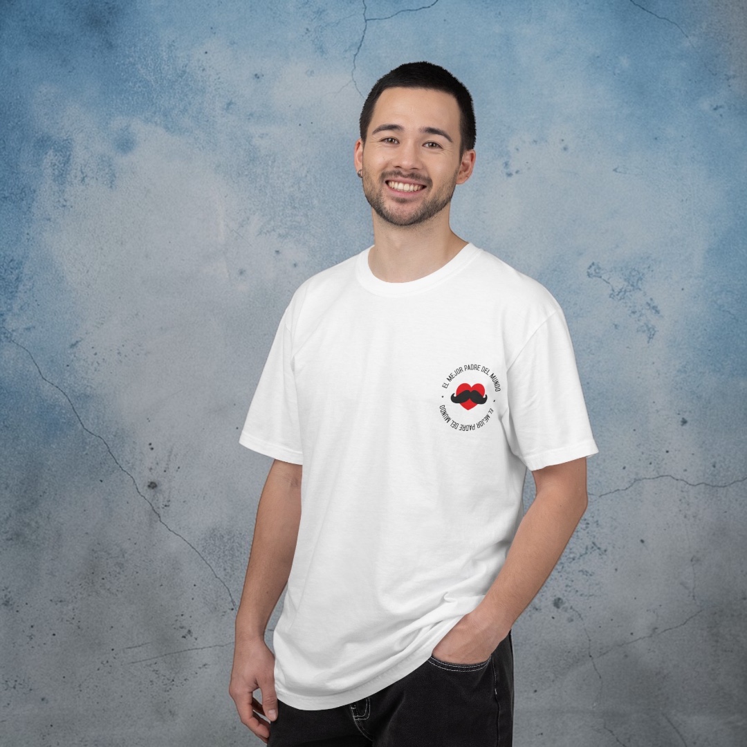 Diseño exclusivo en blanco con frase icónica en frontal y dorsal. Modelo padre luciendo el regalo ideal para su día especial. Hecha en algodón premium para máxima comodidad.