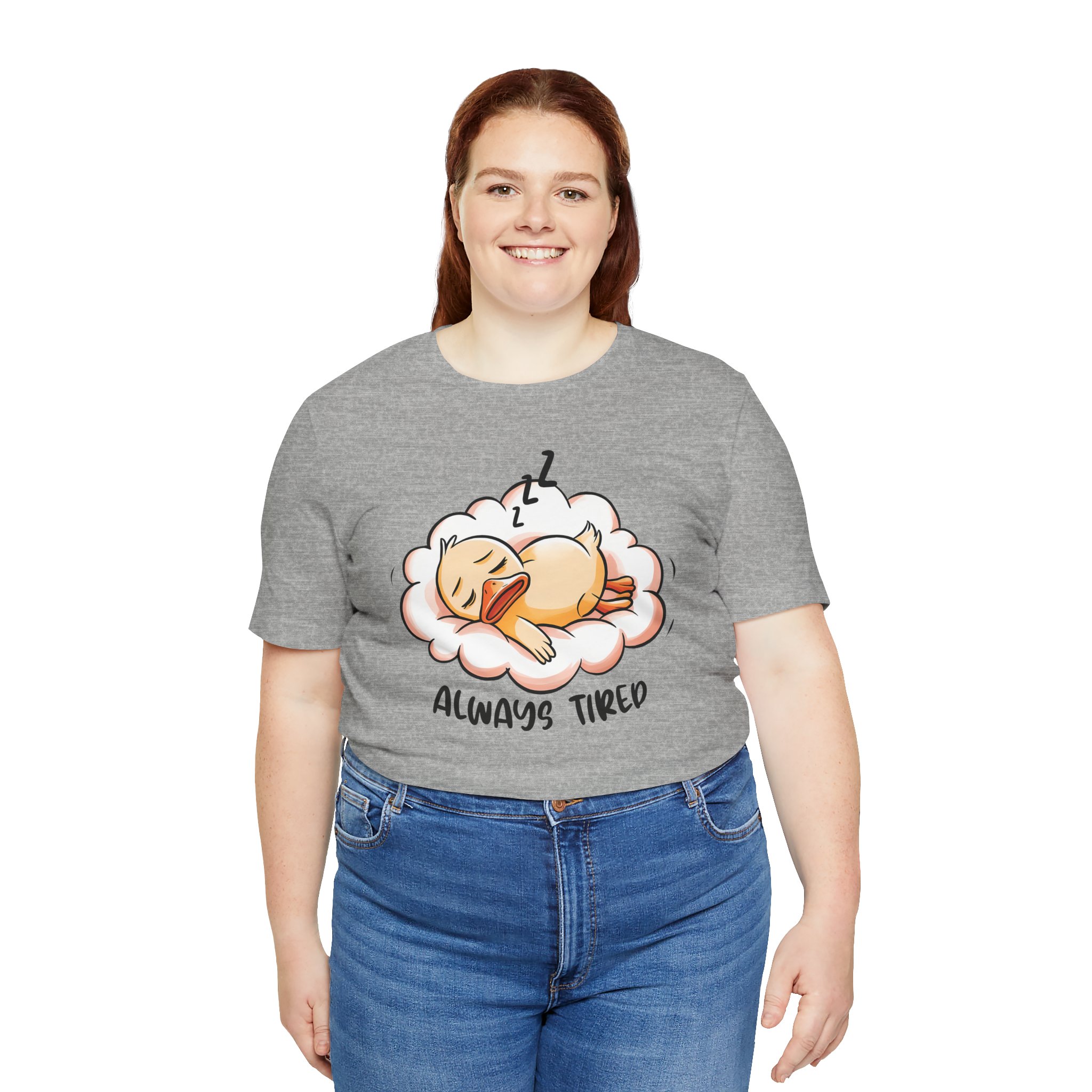 Camiseta con diseño original de pato dormido sobre una nube y texto “Always Tired”. Perfecta para quienes aman el humor y buscan expresar su personalidad con moda cómoda y divertida. Ideal para regalar o usar a diario si el sueño siempre acompaña.