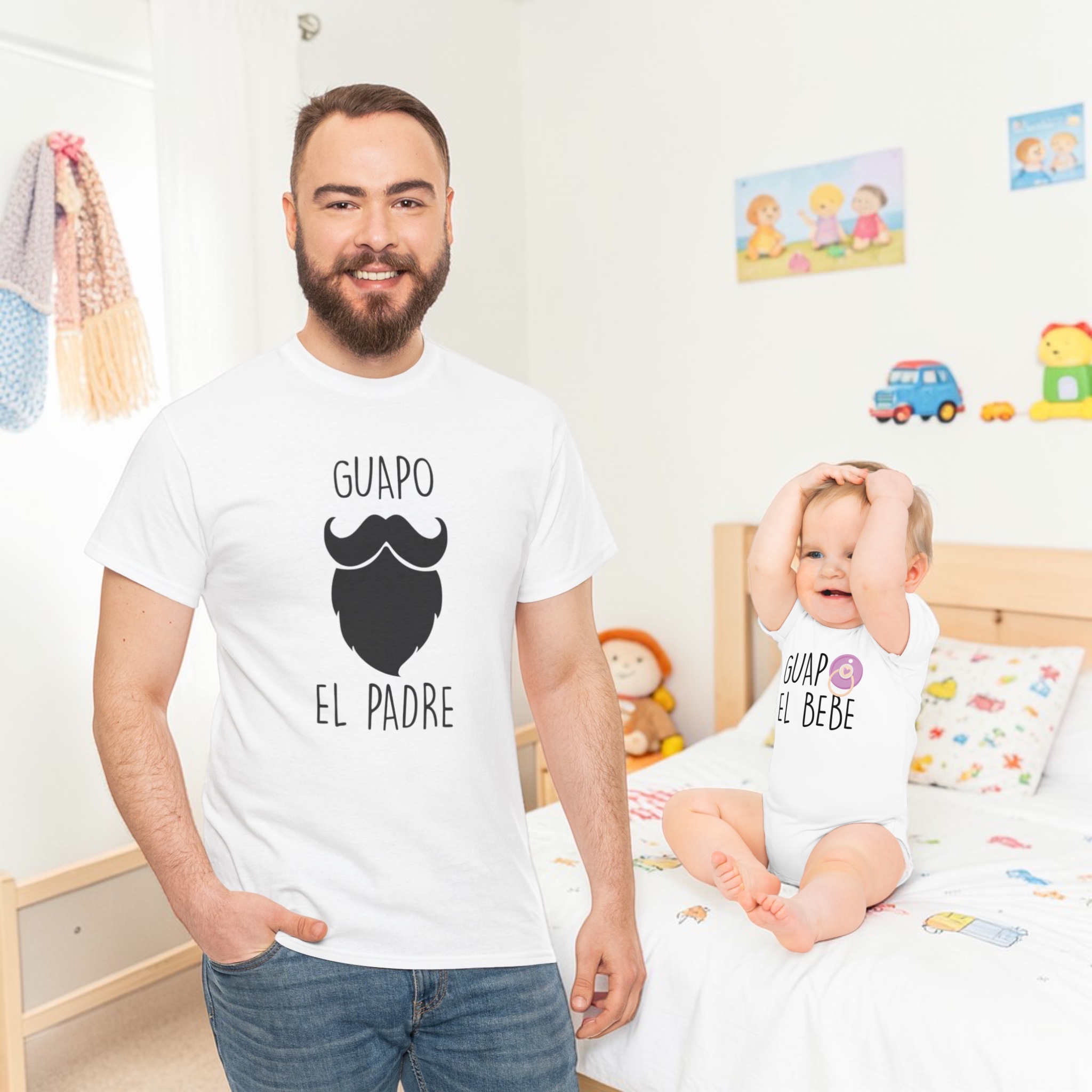 •Camiseta papá: “Guapo el padre” bigote negro.